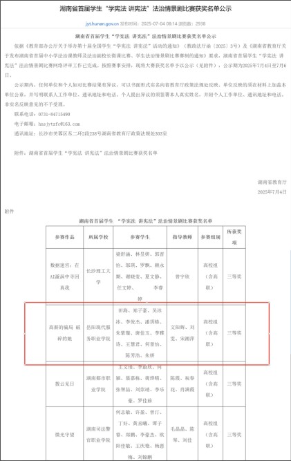 附:湖南省首届学生“学宪法 讲宪法”法治情景剧比赛获奖名单公示